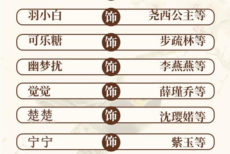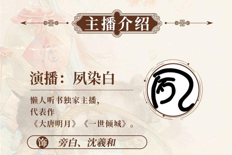 配音演员:影视作品《风起洛阳》《苍兰诀》《显微镜下的大明》《光荣与梦想》《夺冠》《冰糖炖雪梨》等 有声:《似锦》《韶光慢》《一品仵作》《玉无香》《逢春》等