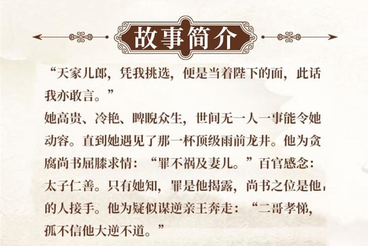 霸榜作品,云起书院白金作家锦凰畅销作品。“天家儿郎,凭我挑选,便是当着陛下的面,此话我亦敢言。”她高贵、冷艳、睥睨众生,世间无一人一事能令她动容。直到她遇见了那一杯顶级雨前龙井。
